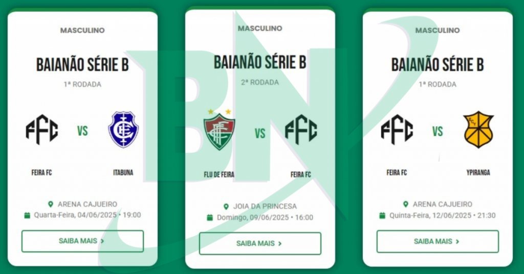 O cenário do futebol profissional em Feira de Santana registra uma expansão para a temporada de 2026. Após um ano de inatividade, o Feirense confirmou sua participação na Série B do Campeonato Baiano. A agremiação oficializou o registro junto à Federação Bahiana de Futebol e se junta ao Fluminense de Feira e ao recém-criado Feira FC, totalizando três representantes do município na busca pelo acesso à elite do futebol estadual. A informação foi confirmada pelo Bahia Notícias, com fontes ligadas ao clube baiano.