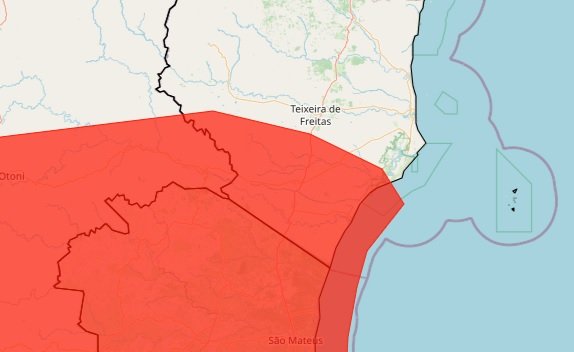 Além do alerta laranja, os municípios de Caravelas, Ibirapuã, Lajedão, Mucuri e Nova Viçosa, no Extremo Sul do estado, estão sob alerta vermelho, classificação que indica grande perigo.