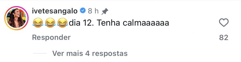 Na ocasião, Ivete se deparou com elogios de um fã sobre o show, que já aconteceu em São Paulo e Belo Horizonte.