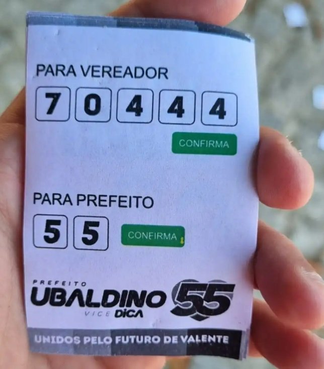 A equipe de campanha de Ubaldino Amaral, candidato a reeleição como prefeito na cidade de Valente, encontrou santinhos do político com o número errado espalhados por colégios eleitorais neste domingo (6). Segundo o site Calila Notícias, parceiro do Bahia Notícias, a suspeita é de crime eleitoral para confundir os eleitores.