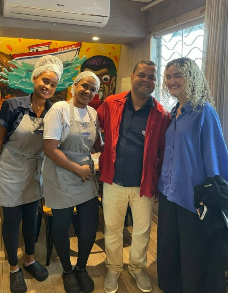 Durante a visita, a artista foi recebida por Leo Santos, o Leo Cazinha, um dos sócios do estabelecimento, que compartilhou registros do encontro nas redes sociais.