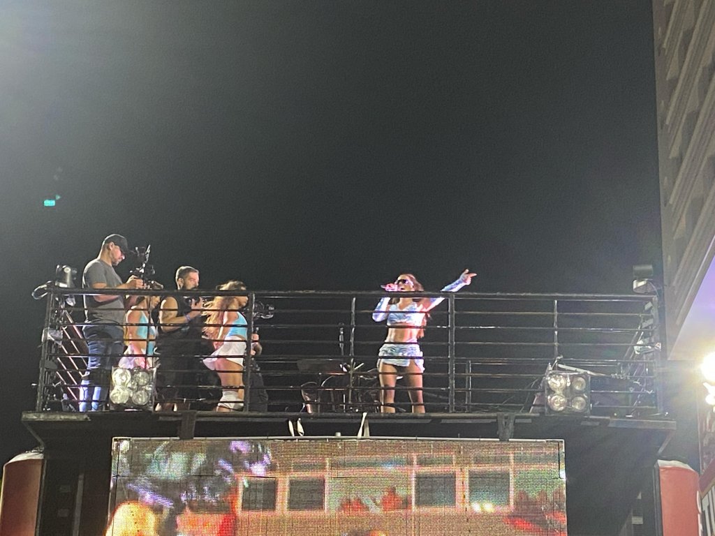 A passagem de Anitta no início do circuito Dodô [Barra-Ondina] em frente ao camarote Expresso 2222 agitou foliões. Da sacada do prédio do camarote, Preta Gil curtia a passagem da cantora, que puxa nesta sexta-feira (28) de carnaval o Bloco da Anitta. O registro foi feito pelo Bahia Notícias.