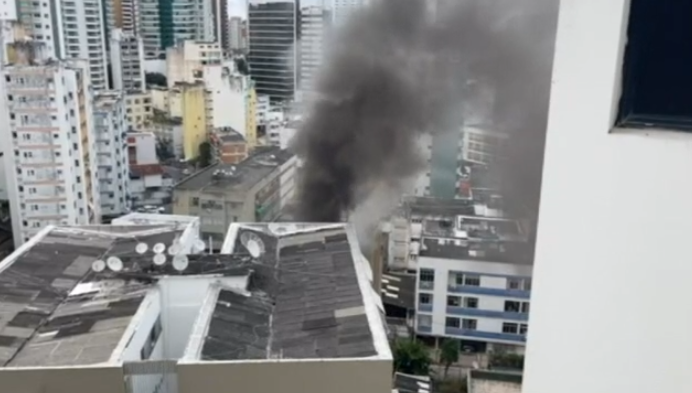 Um incêndio atinge um apartamento na rua Presidente Kennedy, no bairro da Barra, em Salvador, no início da manhã desta quinta-feira (10).