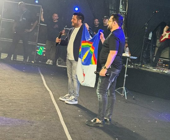 Ao final do show, os artistas posaram com a bandeira e uma foto oficial foi compartilhada pelo perfil, mas não livrou a primeira voz da dupla de críticas.