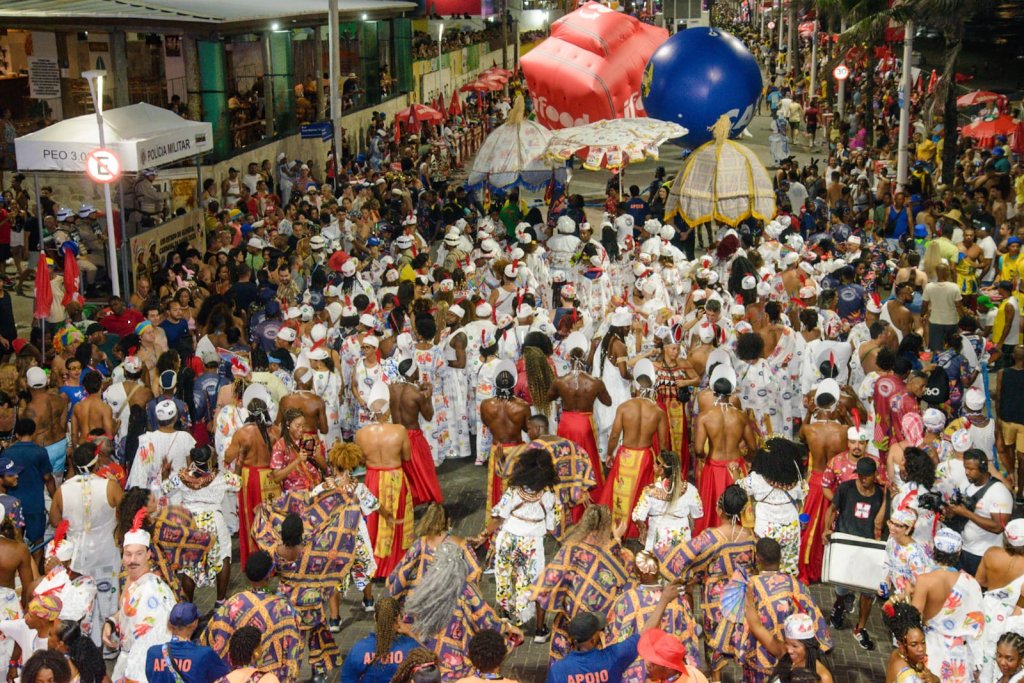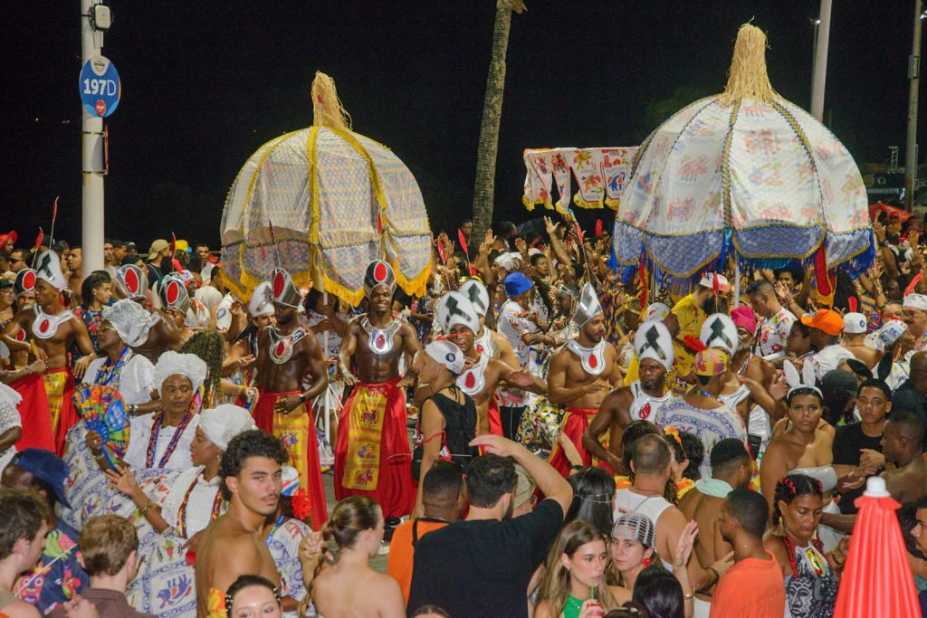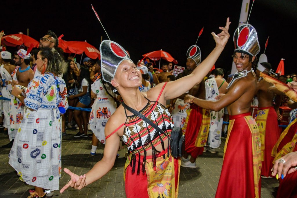 Em mais um dia de desfile, o Cortejo Afro levou colorido ao Circuito Dodô, na noite desta segunda-feira (16). Mesmo após ser “ultrapassado” na fila, o bloco afro levou toda a tradição para a Barra-Ondina, em um ano em que escolheu homenagear o Benin.