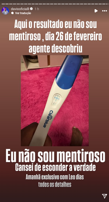 No último sábado, Davi, aos prantos, veio a público comunicar o término com a cirurgiã-dentista Adriana Paula. Na série de stories publicados em tom de desabafo, Davi contou que esperava ser um bom pai para a criança. “Nem que eu volte a rodar Uber, eu vou dar tudo de bom pra essa criança”, declarou.