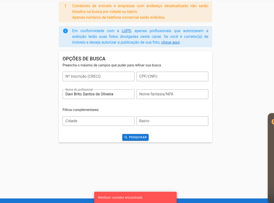 Apesar da venda de imóveis ser um dos investimentos apontados pelo ex-BBB no pós-reality, o Bahia Notícias não identificou o registro do ex-BBB no Conselho Regional de Imóveis do Estado da Bahia (CRECI), autorização necessária para vendas de imóveis de terceiros, como é o caso.
