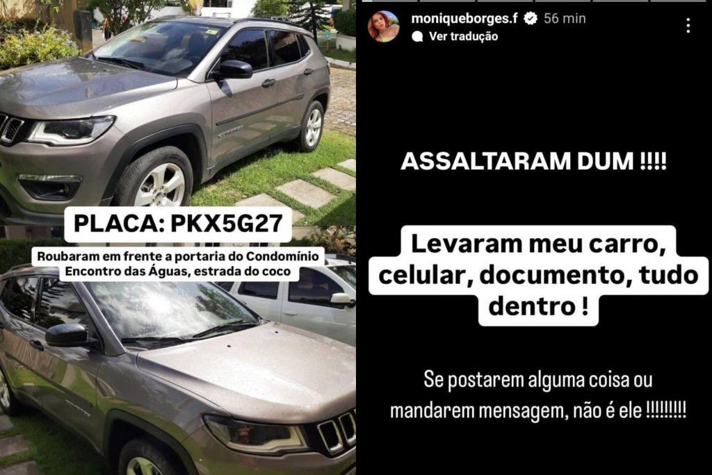"Me pegaram em frente ao condomínio Encontro das Águas enquanto estava esperando Monique vir. Os caras pararam um carro, colocaram a arma na minha cara e falaram: 'desce, desce, desce'", contou nas redes sociais.