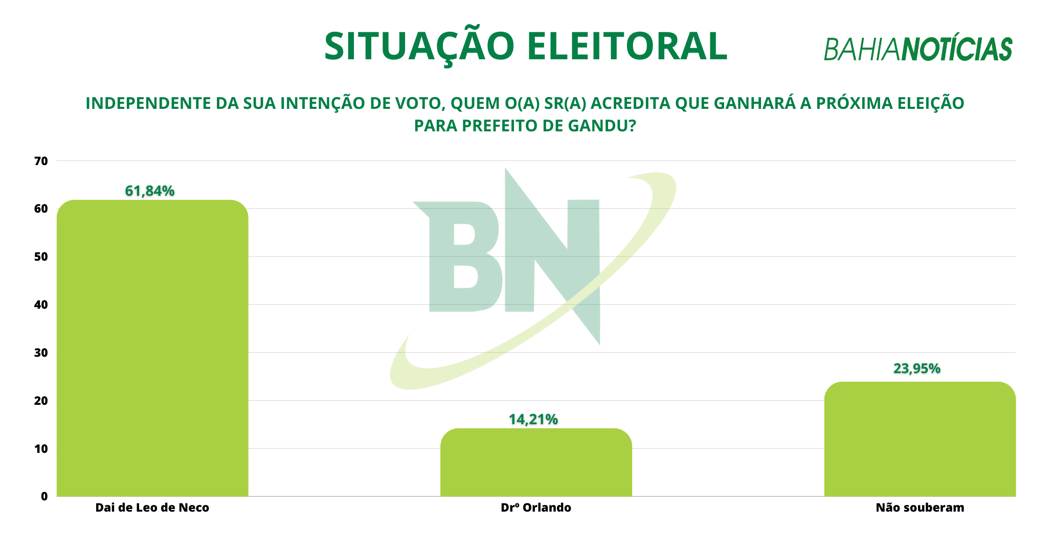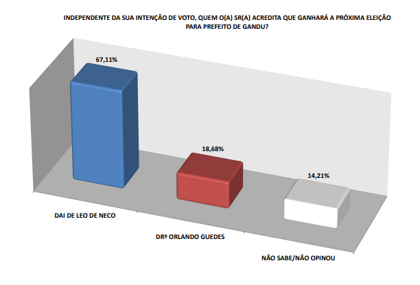 Durante uma pergunta sobre quem eles acreditam que vai ganhar a eleição, 56,78% responderam Dai e 20,34% responderam Dr. Orlando. 1,02% indicaram Djalma Galvão e 0,34% Enfermeiro Holmes. 21,53% não opinaram.