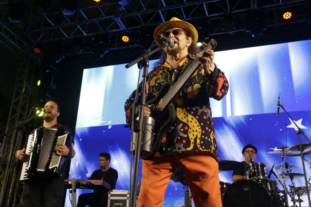 Um dos maiores nomes da MPB há décadas, Geraldo Azevedo se apresentou na noite deste sábado (24), em Salvador, fazendo todo mundo cantar alguns dos seus maiores sucessos. Multifacetado, o artista de 78 anos foi uma das principais atrações no palco montado no Largo do Pelourinho. No repertório de Geraldo, canções como ‘Moça Bonita’ ‘Táxi Lunar’, ‘Bicho de Sete Cabeças’, e ‘Dona da Minha Cabeça’.
