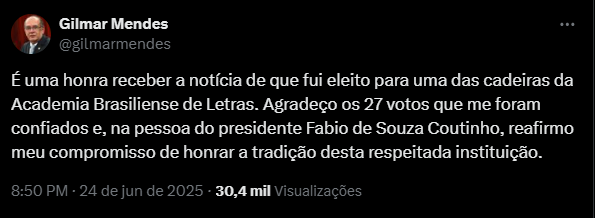 O ministro Gilmar Mendes também comentou a declaração do presidente da República. Para Mendes, Lula estaria, na verdade, “fazendo uma autocrítica do próprio sistema”. Segundo ele, o Supremo não tem “uma banca pedindo causas para lá”, mas que, na verdade, “são as pessoas que provocam”.