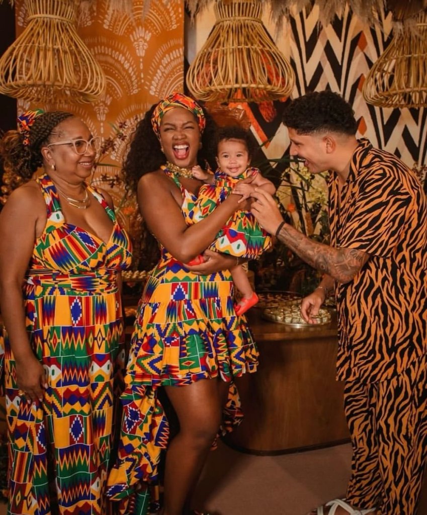 O figurino teve um papel especial na celebração, que trouxe o tema "África" e reuniu familiares e amigos. Os vestidos, em estampas vibrantes de amarelo, azul, verde, vermelho e branco, enriqueceram ainda mais os cliques do evento.