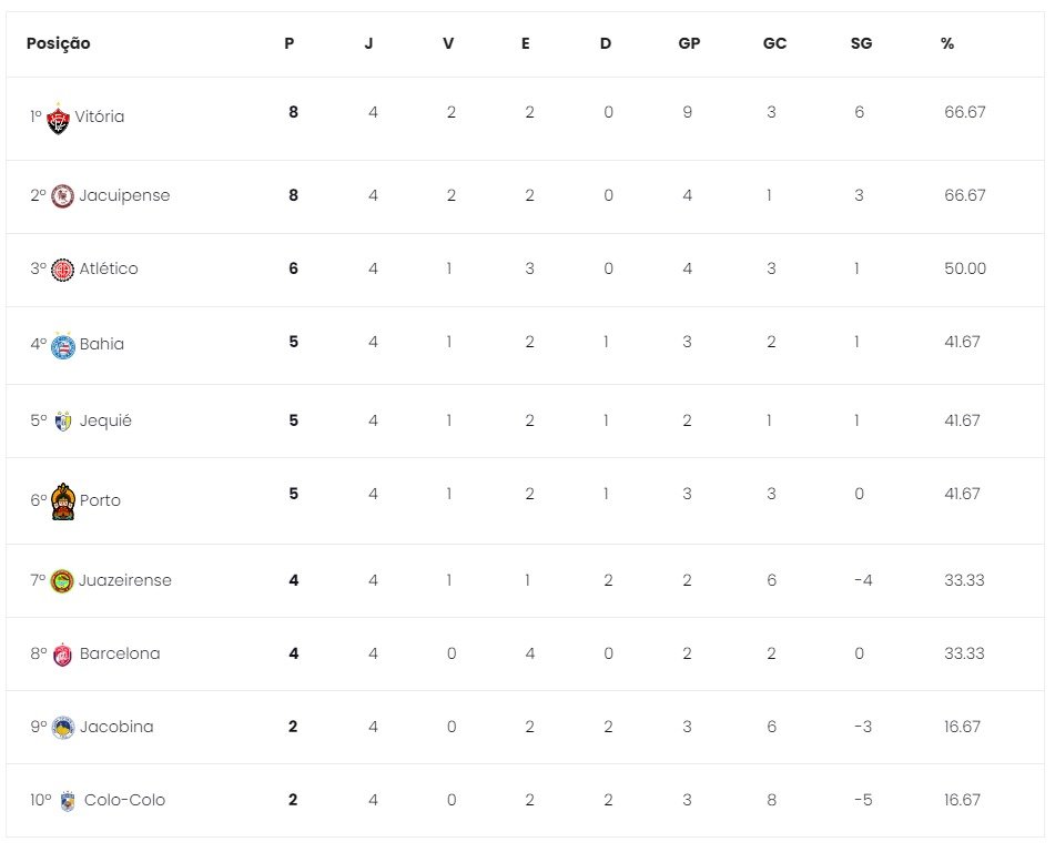 Confira abaixo os próximos confrontos que serão válidos pela 5ª rodada do Campeonato Baiano, junto à tabela atualizada da competição:
