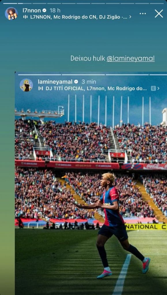 O cantor L7nnon reagiu após o atacante do Barcelona, Lamine Yamal, utilizar uma de suas músicas para comemorar a vitória na La Liga. O atleta de 17 anos foi uma das peças fundamentas para a vitória do time espanhol.