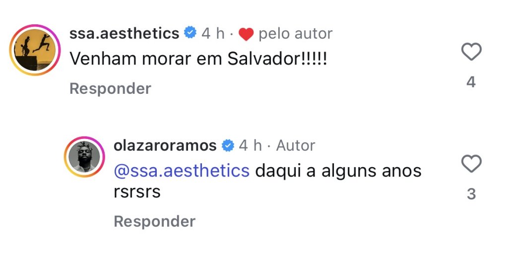 Nos comentários da postagem feita por Lázaro, a "terceira" parte da roda foi lembrada pelo público, Wagner Moura, que atualmente está em cartaz na capital baiana com o espetáculo 'UM JULGAMENTO - depois do Inimigo do Povo'.