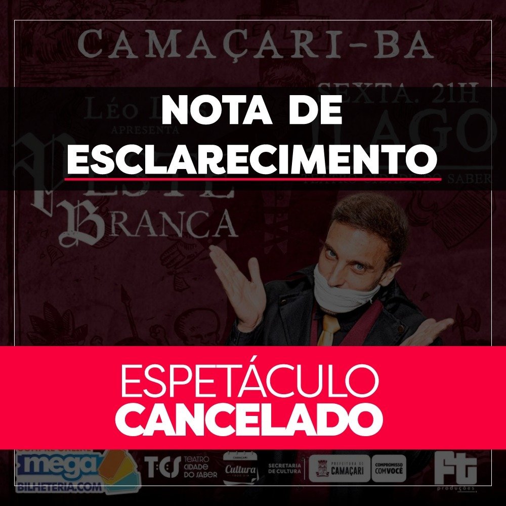 A Secretaria de Cultura de Camaçari comunicou, nesta quarta-feira (19), que o espetáculo do comediante Léo Lins, Peste Branca, que aconteceria no Teatro Cidade do Saber foi cancelado.