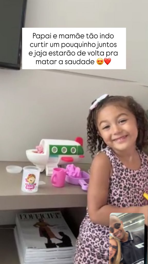 “Partiu NY. Vamos tirar uns dias de folga. Papai quer ficar grudadinho em nós”, contou a influenciadora através de seus stories. No mesmo vídeo, o cantor brincou: “Fazer outro filho’.