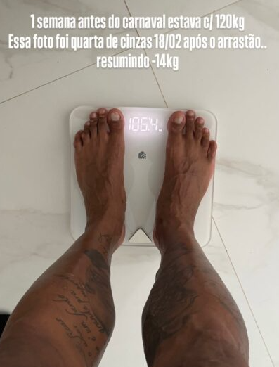 Aos seguidores, o artista revelou que a correria com a agenda desde o início de fevereiro o fez perder 14kg. Nos anos anteriores, a perda não passou dos 10 kgs.