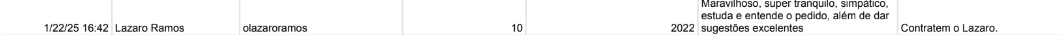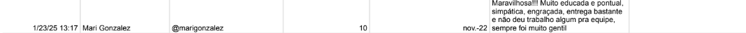 Mari Gonzalez: a ex-BBB e ex-Pânico foi avaliação com 10 por um trabalho prestado em novembro de 2022. Entre as qualidades estão a educação, pontualidade e a colaboração da equipe da influenciadora.
