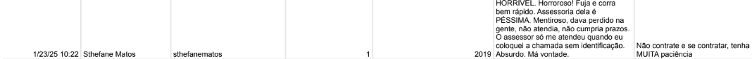 Sthe Matos: a blogueira recebeu uma nota 1 ao ser avaliada por um trabalho prestado em 2019. Segundo o avaliador, a assessoria da influenciadora é "péssima" e só atendeu a demanda quando foi ligado sem identificação. "Se contratar, tenha muita paciência".