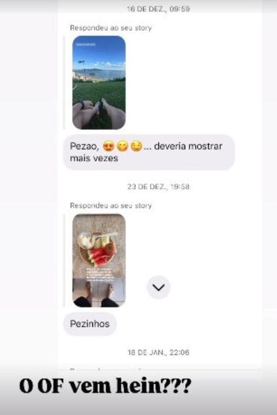 “O OF [Only Fans] vem, hein?”, brincou Lucas na publicação. “Os pés no fundo”, comentou uma pessoa, sobre a postagem envolvendo seus pés. “Pezão… deveria mostrar mais vezes”, comentou outro.