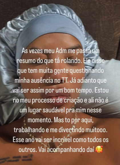 Em 2023, a baiana chegou a fazer uma apresentação mais longa durante a festa de São João de Carlinhos Maia, mas na época, a artista disse que aquele não era o grande retorno dela para a música.