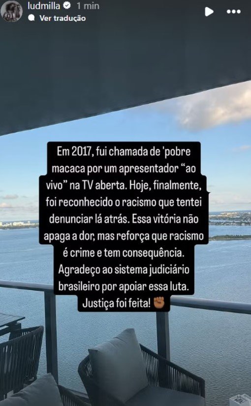 "Eu vi alguns comentários das pessoas me zoando: 'Ah, a Ludmilla não fala inglês: como ela está se comunicando com as pessoas lá fora? Cara, ter carreira internacional não estava nos meus planos, mas foi acontecendo. Eu não tive tempo de me preparar, não tive uma infância tão favorecida, que [permitisse que] eu estudasse inglês. Agora, graças a Deus, pelo trabalho, eu posso fazer isso. E agora, vou estudar inglês. Estou estudando e aprendendo. Eu quero e vou me dedicar."