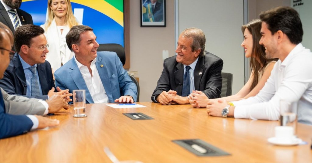 O ato ocorreu após reunião com o pré-candidato a presidente, Flávio Bolsonaro (PL), com o presidente nacional da legenda, Waldemar da Costa Neto, e do presidente estadual do partido, João Roma.