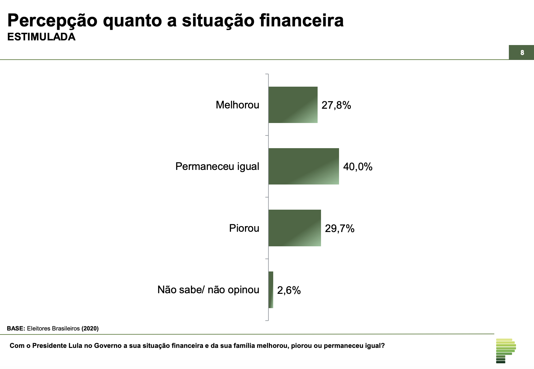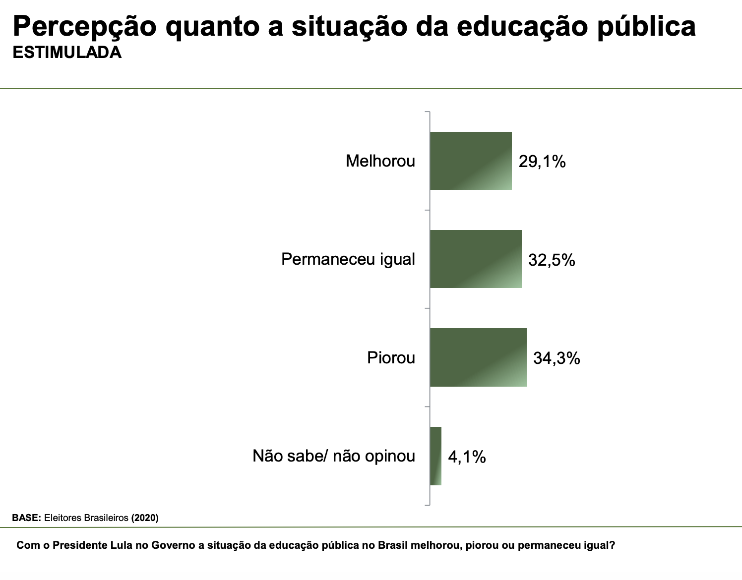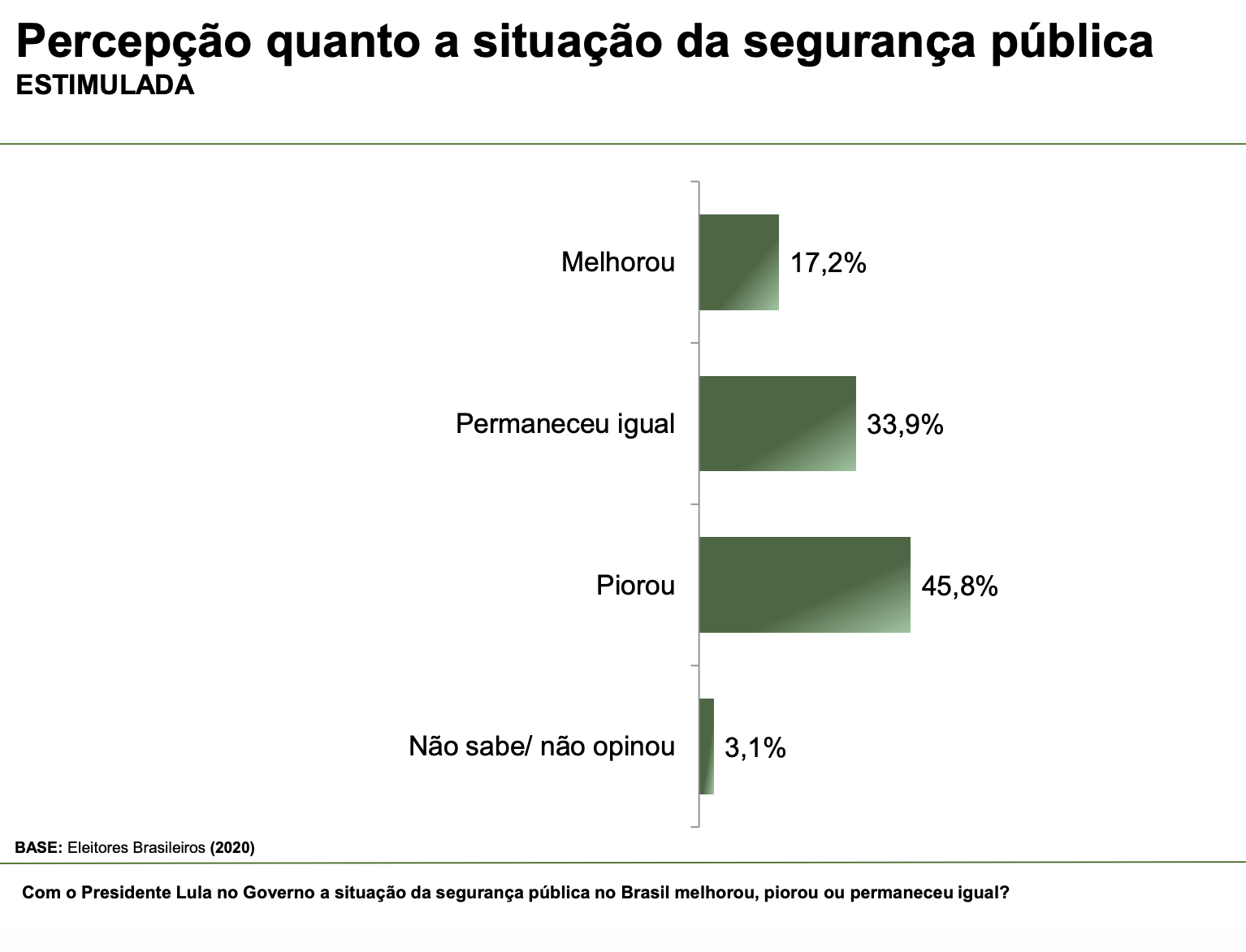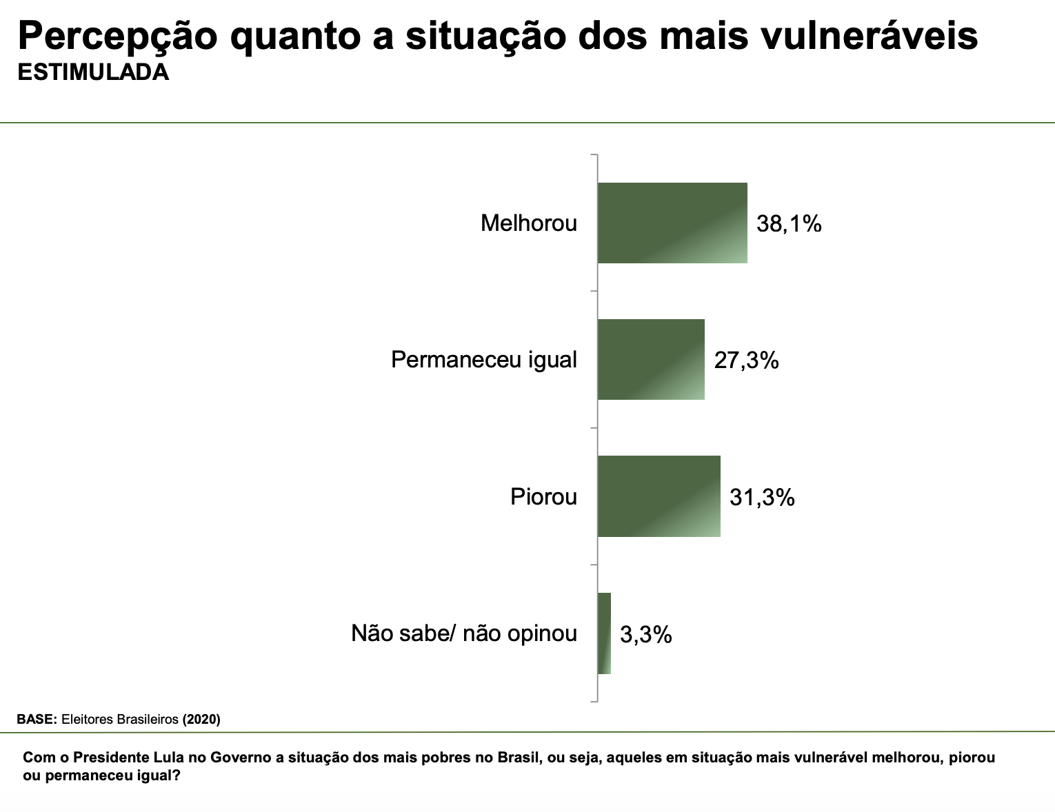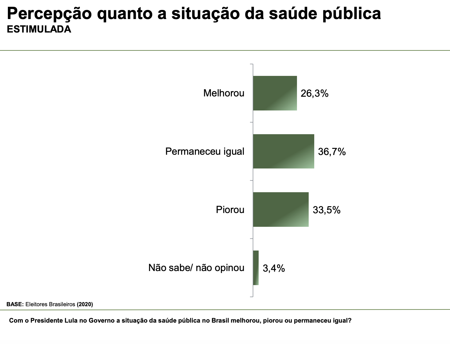 Apesar de estar na frente em todas as simulações, inclusive obtendo seus melhores percentuais em disputas contra familiares do ex-presidente Jair Bolsonaro, o presidente Lula apresentou uma alta rejeição. Também há um crescimento na quantidade de pessoas que dizem não votar em candidato indicado por Lula ou Bolsonaro.