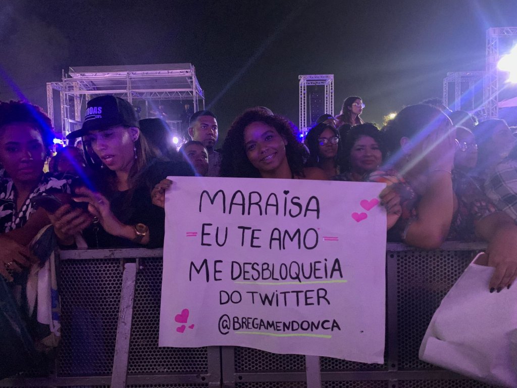 Com um cartaz escrito “Maraísa me desbloqueia”, Amanda Queiroz, de vinte e seis anos, contou que foi bloqueada pela cantora sertaneja desde o mês de abril e não consegue ver nenhuma publicação da artista.