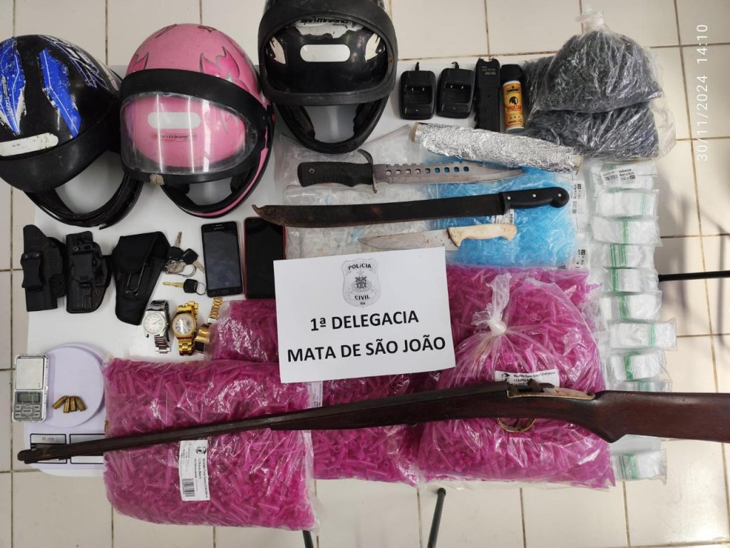 O material ilícito foi apresentado na Delegacia de Mata de São João. As diligências seguem com o objetivo de identificar e localizar os acusados.