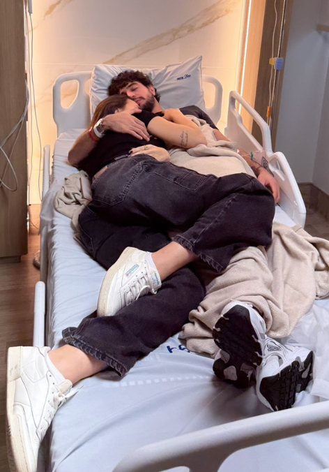 O artista chegou a dar entrada no hospital em uma cadeira de rodas. Na web, Rafa Kalimann, companheira de Nattan e mãe da primeira filha do cantor, postou uma foto deitada com ele. "Cuidando do meu bichinho".
