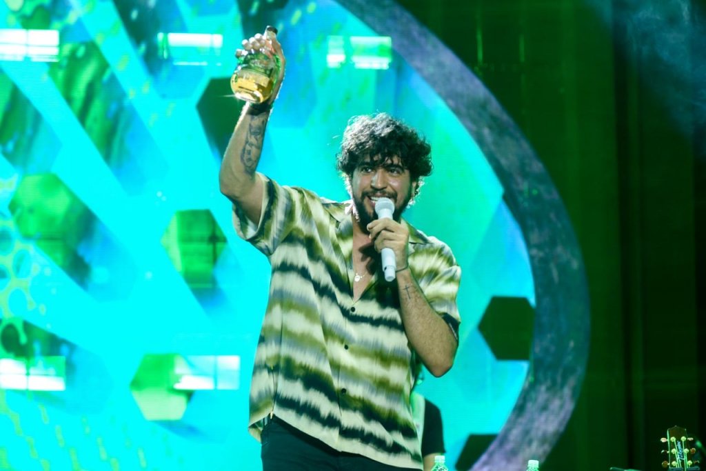 Em meio à interação, o artista brincou com o público presente. “Hoje eu só saio daqui quando todo mundo estiver bêbado”, afirmou, arrancando risos da plateia.