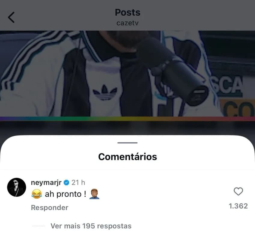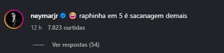 A resposta de Neymar veio nos comentários da publicação, com um curto e sugestivo: “Ah, pronto”, acompanhado de um emoji com a mão no rosto, expressão comum de frustração ou descrença.