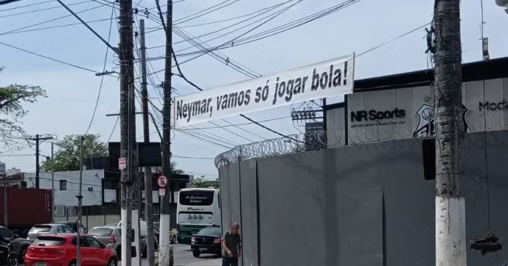 O camisa 10 do Santos, Neymar, sofreu cobranças nesta quinta-feira (13). Uma faixa foi pendurada no CT Rei Pelé, local que o elenco do Peixão treina.