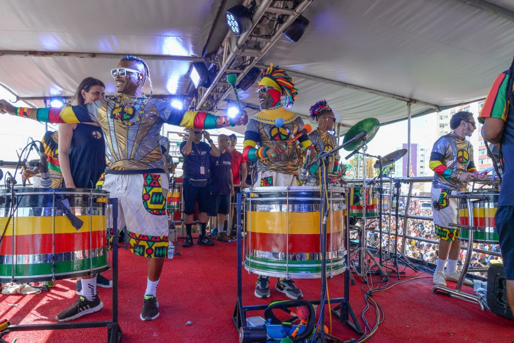 A cantora ainda fez questão de chegar perto dos percussionistas do grupo e curtiu a festa no meio da banda. Nas redes sociais, ao compartilhar um registro em homenagem ao Olodum, a cantora agradeceu pela inspiração.