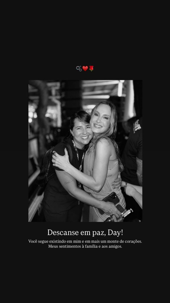 Claudia Leitte também homenageou a diretora de marketing nas redes sociais. “Descanse em paz, Day! Você segue existindo em mim e em mais um monte de corações. Meus sentimentos à família e aos amigos”, escreveu ao postar uma foto ao lado da profissional.
