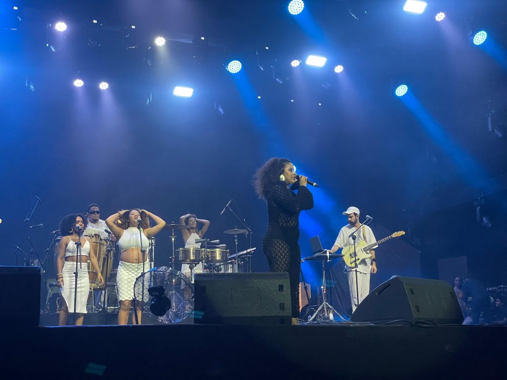 A cantora Rachel Reis já está no palco da Praça Cairu, em Salvador, na noite deste domingo (2). Ela participa do show Sambaqui, capitaneado pela Baiana System. A vocalista disse que tomou um susto ao se ver no telão no show de Gilberto Gil e Família na Concha Acústica.