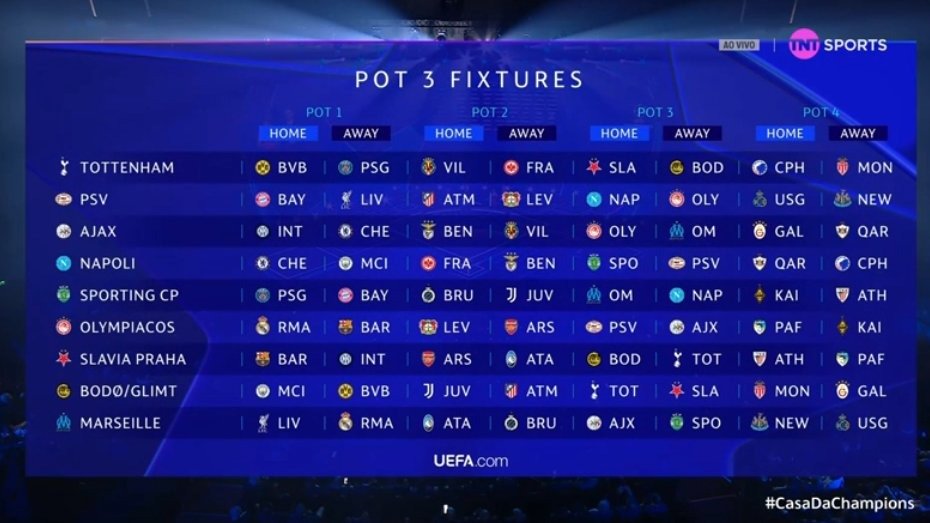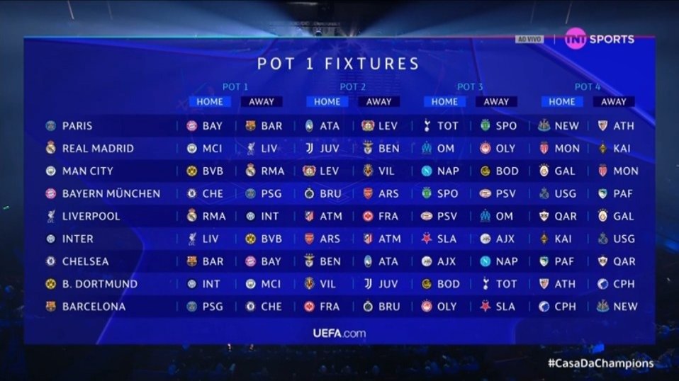 No lado tricolor de Madrid, o Atlético jogou contra o Frankfurt e também goleou por 5 a 1. Julián Álvarez, Antoine Griezmann, Giacomo Raspadori, Giuliano Simeone e Robin Le Normand fizeram os tentos. Mais cedo, às 13h45, jogando no Cazaquistão, o Real Madrid aplicou um 5 a 0 no Kairat com três gols de Kylian Mbappé. Eduardo Camavinga e Brahim Díaz também balançaram a rede.