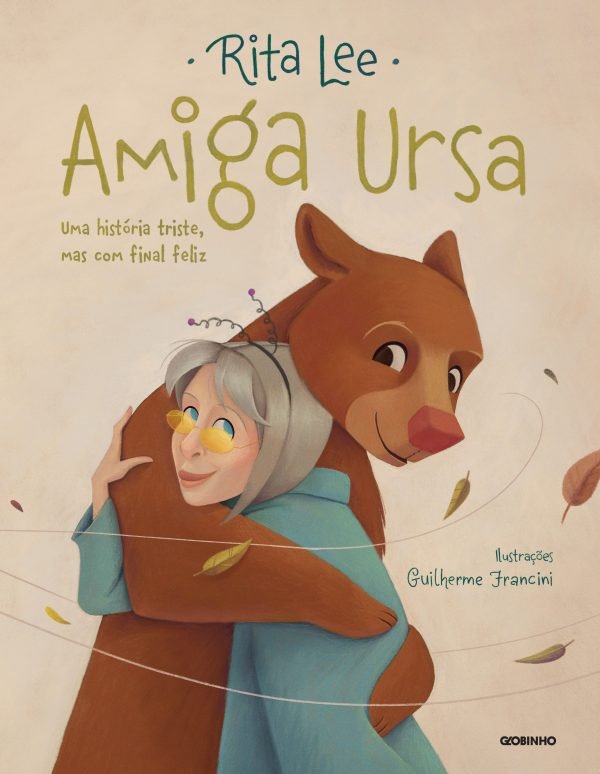 Na capa do livro, Rita Lee aparece abraçando a ursa. A ilustração é de Guilherme Francini.