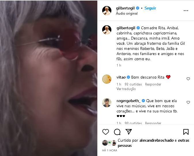 Uma mensagem da rainha do rock, Rita Lee, para o cantor e compositor Gilberto Gil, surpreendeu e emocionou o público em meio as celebrações dos 82 anos do Imortal. O perfil oficial da artista, que faleceu em 2023 em decorrência das complicações do câncer, divulgou um áudio inédito de Rita para o amigo.