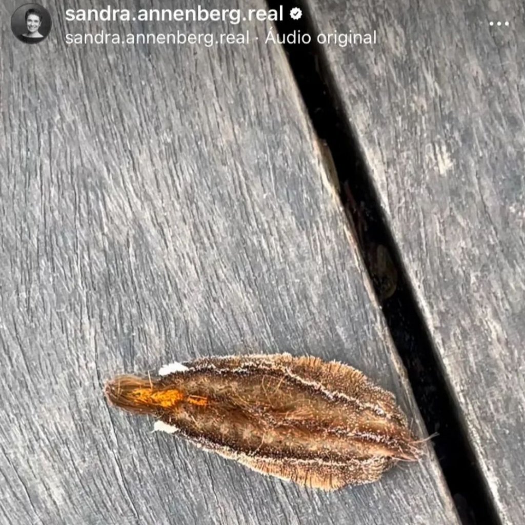 O cuidado da global não foi em vão. Sandra chegou a relatar ter sentido fortes dores após pisar no bicho e compartilhou do que se tratava, uma taturana conhecida como 'lagarta-cachorrinho', que é tóxica e em contato com a pele humana pode provocar queimação, dor e inchaço.