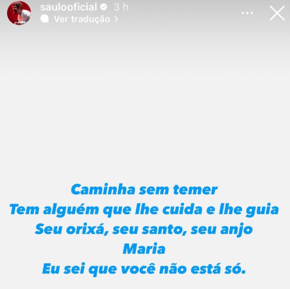 "Caminha sem temer. Tem alguém que lhe cuida e lhe guia. Seu orixá, seu santo, seu anjo Maria. Eu sei que você não está só", escreveu o artista.