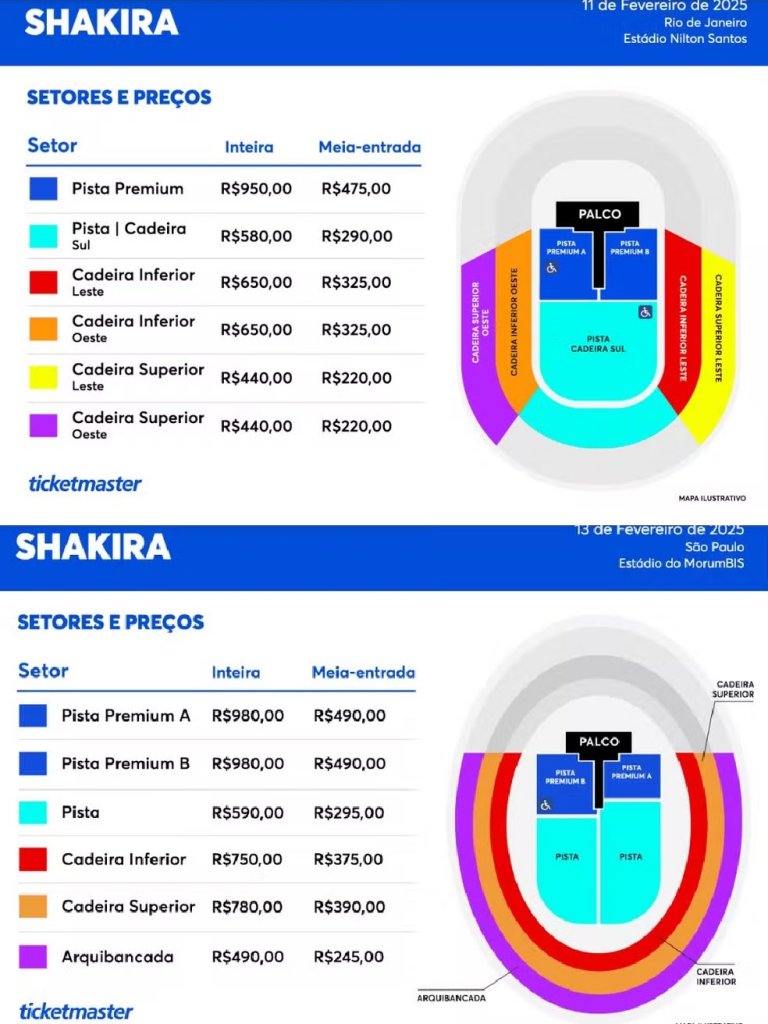 As entradas custam a partir de R$ 220 e o ingresso mais caro está sendo vendido por R$ 980.