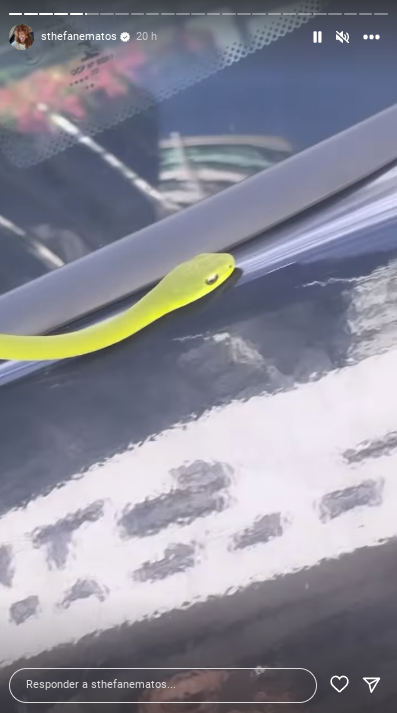Nos Stories, em seu perfil no Instagram, Sthe disse que solicitou o carro para ir até um salão de beleza e quando abriu a porta do veículo para desembarcar, foi atacada pela serpente.