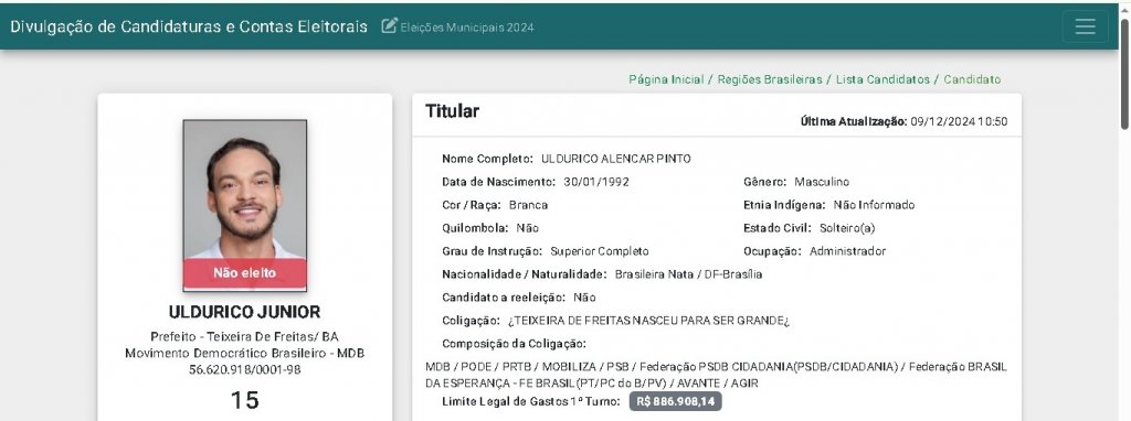 Em 2024, Uldurico disputou a prefeitura de Teixeira de Freitas pelo MDB, partido que compõe a base do governador Jerônimo Rodrigues (PT). Na época, a federação Cidadania-PSDB também apoiou seu nome para a eleição, fazendo parte da coligação, conforme informa o TSE.