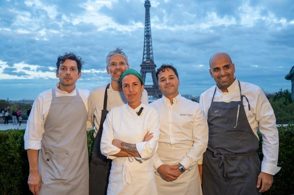 Com vista para a Torre Eiffel, os pratos foram harmonizados com vinhos brasileiros selecionados por Marina Giuberti, que trouxe rótulos escolhidos para destacar a riqueza do nosso país e complementar a jornada gastronômica da noite.
