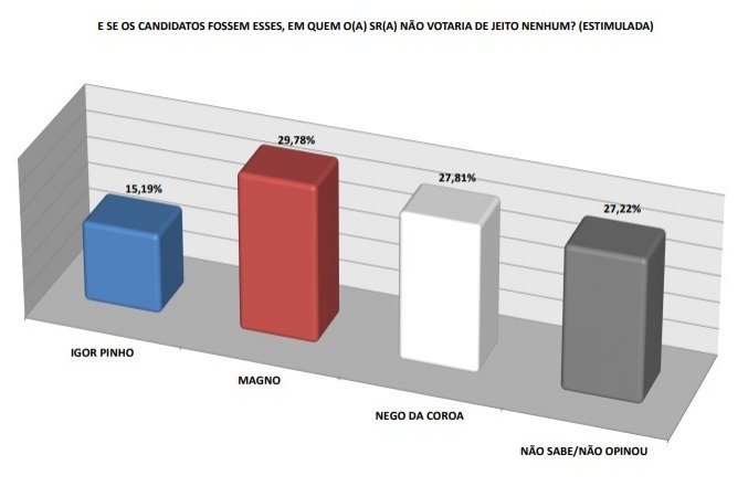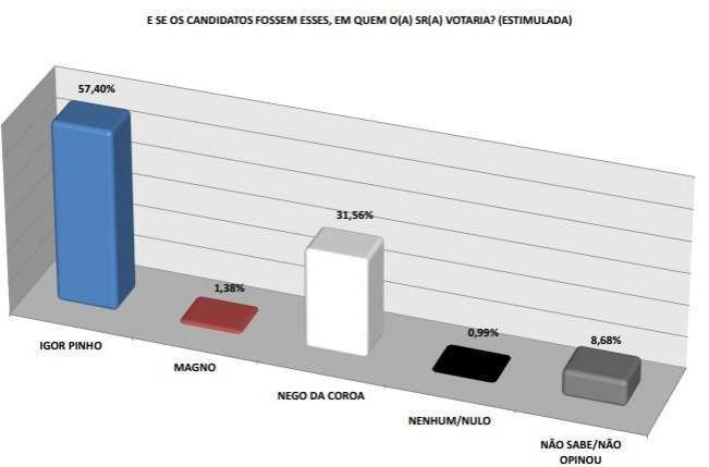 O levantamento foi feito nos dias 14 e 15 de agosto e ouviu 459 moradores em entrevistas presenciais distribuídas entre as principais localidades do município.