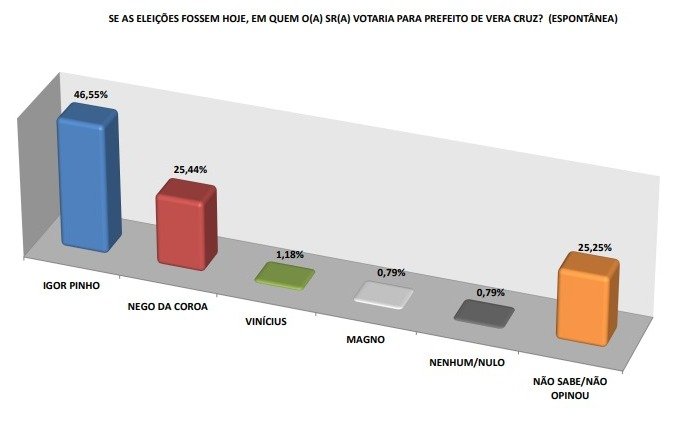 O prefeito de Vera Cruz, Igor Pinho, alcançou 89,1% de aprovação em pesquisa realizada pelo Instituto Eleva.