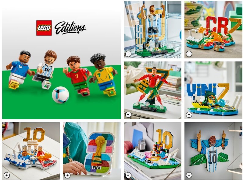 Os conjuntos variam em nível de complexidade e quantidade de peças. Um dos destaques é um modelo dedicado exclusivamente ao argentino, com mais de mil peças, centrado em sua tradicional camisa 10.